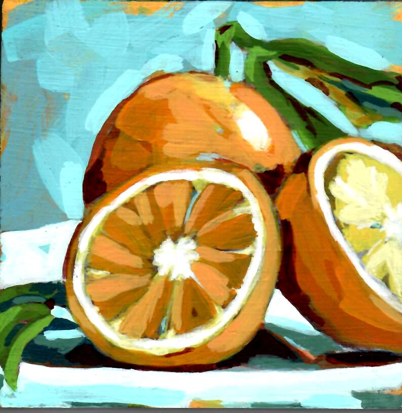 Taste the goodness in this acrylic painting, Navel Goodness. Painted on hard board and cradle board in a vibrant modern impressionist style, its 22 layered shades and bold brush strokes create a lively optical blend that brings the orange flavors to life. This will bring a pop of color to your decor.